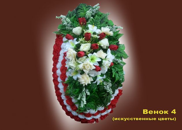 Венок 4 (110 см) - 4 500 р. На заказ. Венок из искусственных цветов категории Элит. Высота венка: 90 см - 2 500 руб; 110 см - 4 500 руб; 140 см - 6 000 руб; 180 см - 9 000 руб;