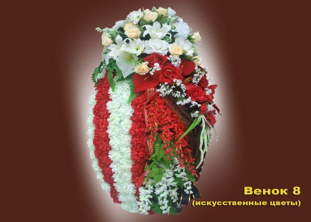 Венок 8 (110 см) - 4500 р. На заказ. Венок из искусственных цветов категории Элит. Высота венка: 90 см - 2 500 руб; 110 см - 4 500 руб; 140 см - 6 000 руб; 180 см - 9 000 руб;
