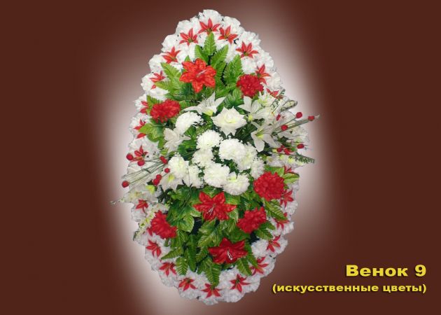 Венок 9 (140 см) - 6000 р. На заказ. Венок из искусственных цветов категории Элит. Высота венка: 90 см - 2 500 руб; 110 см - 4 500 руб; 140 см - 6 000 руб; 180 см - 9 000 руб;