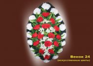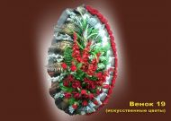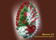 имитирующих: настоящие розы, гвоздики, лилии, хризантемы, и т.д. Цена венка зависит от категории исполнения и высоты.
